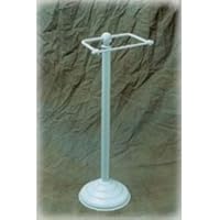 An elegant touch for your bathroom. This freestanding toilet roll dispenser provides an attractive alternative to wall-mounted toilet paper holders. Toilet tissue stand can be moved anywhere near the commode for convenient access. Durable steel construction - available in white enameled steel or brass plated. Measures 23" H. .